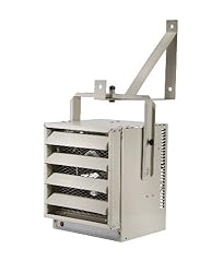 Compact industrial unit heater with stainless-steel sheathed heating element 5,000 watts of heat output; airflow rate of 200 CFM; adjustable louvres Built-in single-pole bulb thermostat for accurate temperature control Fan-delay function; swivel bracket included for ceiling- or wall-mounting Measures 9-1/2 by 11 by 9 inches