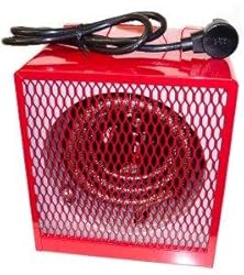 Dayton 3VU36 Electric Heater With Thermostat Remove the chill from your garage or workspace with the Dayton L5600 electric shop and garage heater, perfect for any utility space or work area up to 500 square feet! This handy little appliance is the perfect solution to that frosty chill and provides great features, including:Reliable PerformanceThe L5600 can heat up your room in a matter of minutes. It also features durable construction and its motor is permanently lubricated, cutting down on maintenance.Built-In ThermostatThermostats are set so that heaters and air conditioners will not pass a certain temperature. The L5600 electric shop and garage heater also includes a thermostat that will allow you to heat your room without constant temperature adjustment or monitoring.Great UsesUse the L5600 to heat up your garage, shop, or any other drafty area without permanent air conditioning installed. You can also save money heating up a single room as opposed to the whole home!Protective MeasuresHeaters can become a dangerous appliance if left unattended, but the L5600 has automatic safety features! The Dayton L5600 puts your safety first with its protective intake and discharge grills, as well as its high-temperature automatic shut-off to prevent overheating.
