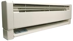 Q-Mark HBB1254 Hydronic Baseboard Heater With 1250 Watts For a heater that delivers a steady, uniform comfort level in a room by having low unit surface temperatures, natural convection and large heating fin areas, choose the Q-Mark HBB1254 Electric Hydronic Baseboard Heater. The sheathed heating element is completely submerged in heat transfer fluid and totally sealed in a copper tube spanning the length of the heater. This means that even after the thermostat is turned off, soft warmth continues to radiate because of the maximum heat retention of the hydronic element. The Q-Mark HBB1254 Electric Hydronic Baseboard Heater has clean, quiet operation that without the noise of a traditional hot water piping system, does not have a noisy blower and is free from the dirt of force-air systems. Efficient and economical, the individual room control provided permits heating only in desired areas or use as a total electric heat source. The large wiring compartment of the Q-Mark HBB1254 baseboard heater is accessible from either end or front, enabling rapid, easy hookup. It also has high-temperature shutoff protection for your safety. Also, the contemporary styling and neutral color blends with any decor. It is three inches deep and mounts lush to the wall and flat on wood, tile or carpeted floor. A ten year limited warranty is included.